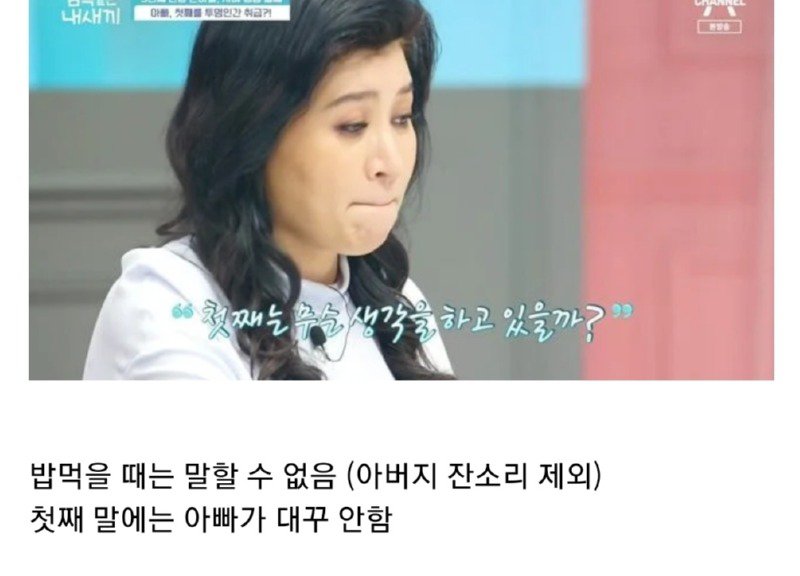 밥먹을 때는 말할 수 없음(아버지 잔소리 제외) 첫째 말에는 아빠가 대꾸 안함