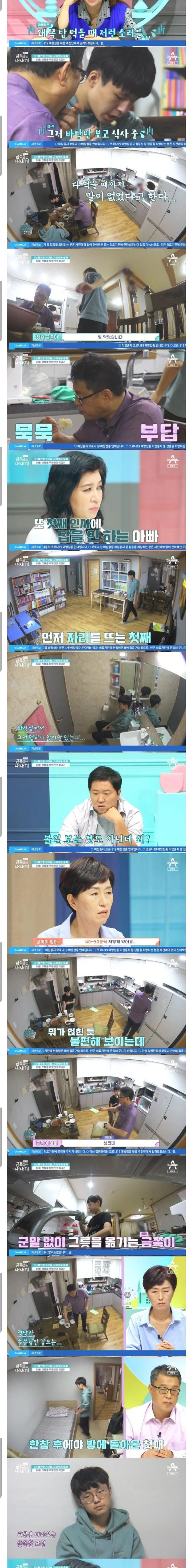 식사 중 다그 치는 아빠. 그저 바닥만 보고 식사 하는 아들