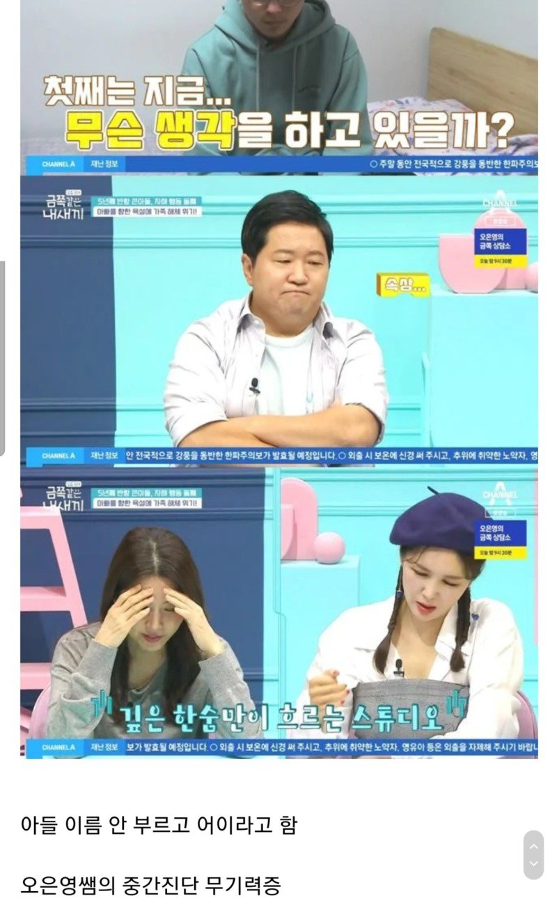 아들 이름 안 부르고 어이라고 함. 오은영쌤의 중간진단 무기력증.