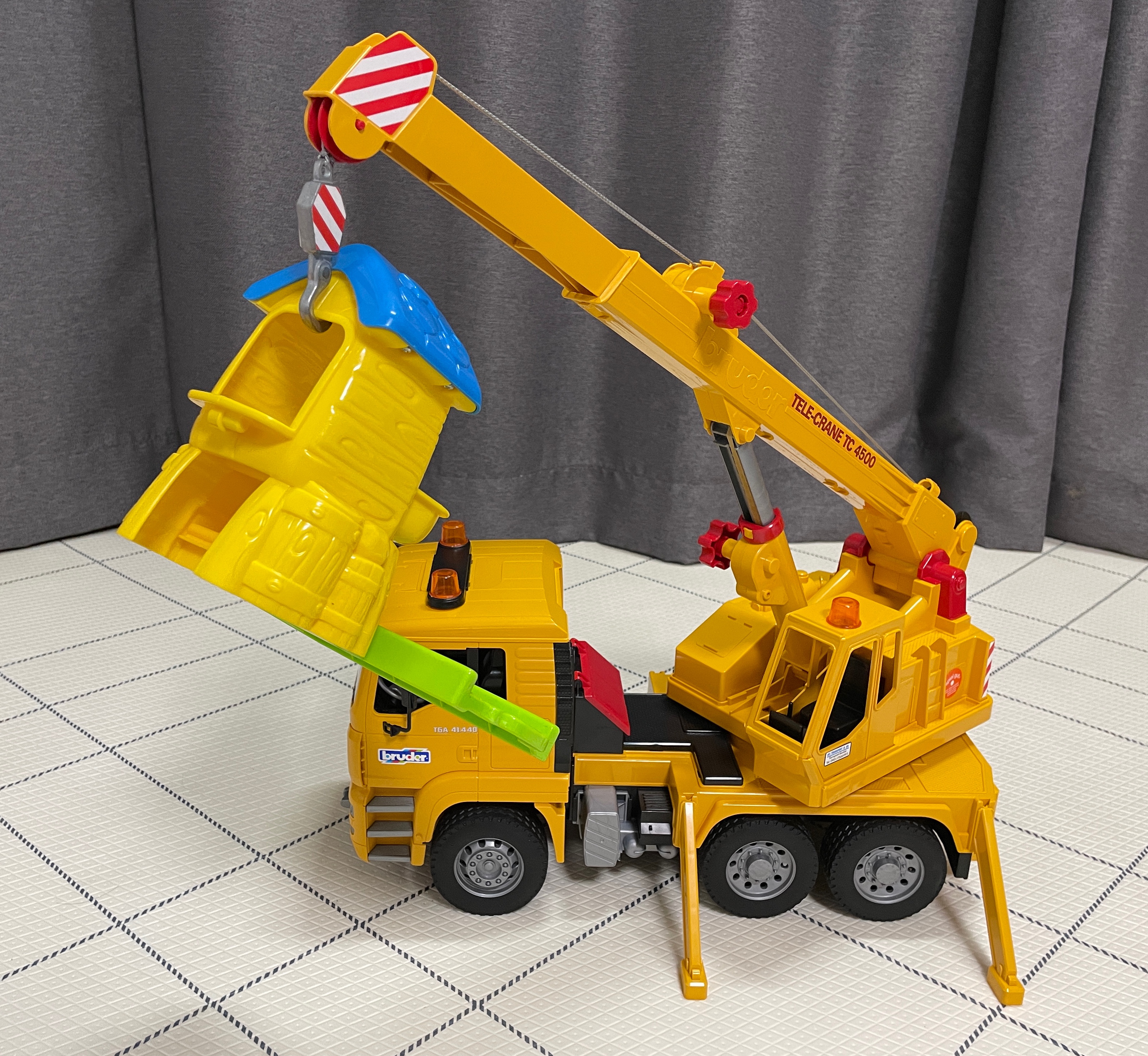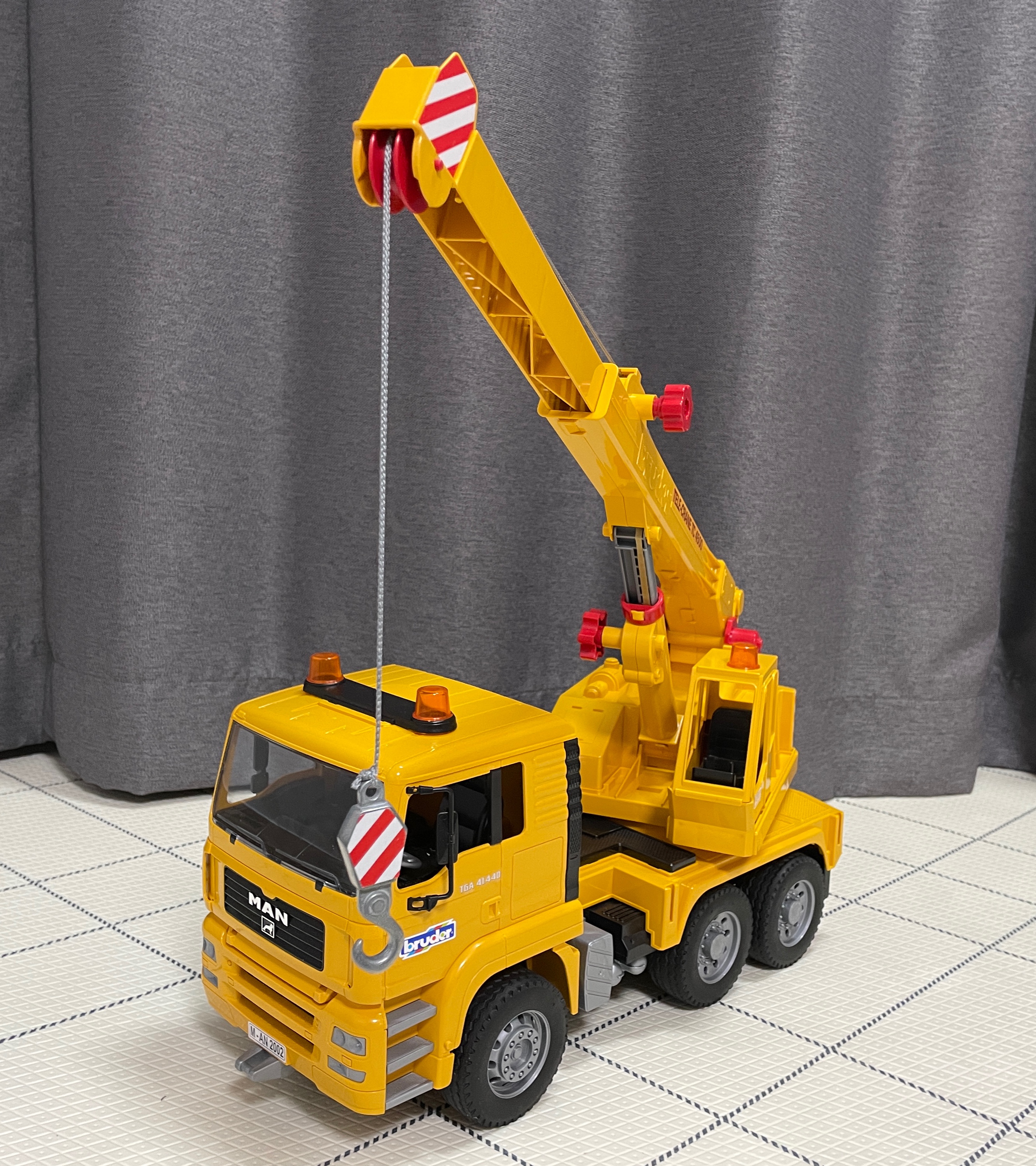 크레인 트럭이 정밀하게 구현되었지만 비상 등이나 소리가 나지 않는 점은 아쉽습니다. 소리와 라이트가 제공되었다면 아이들이 더 재미있게 가지고 놀 수 있을거란 생각이 듭니다.