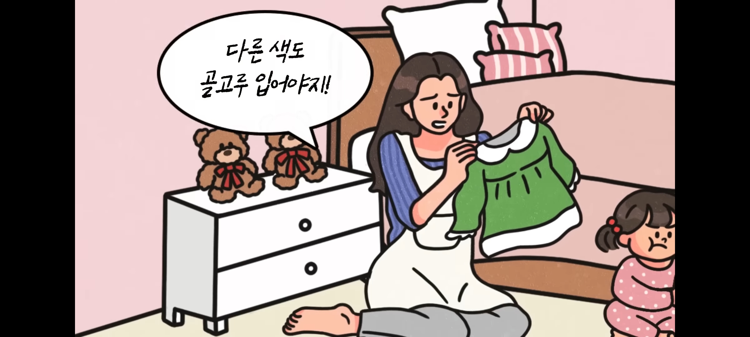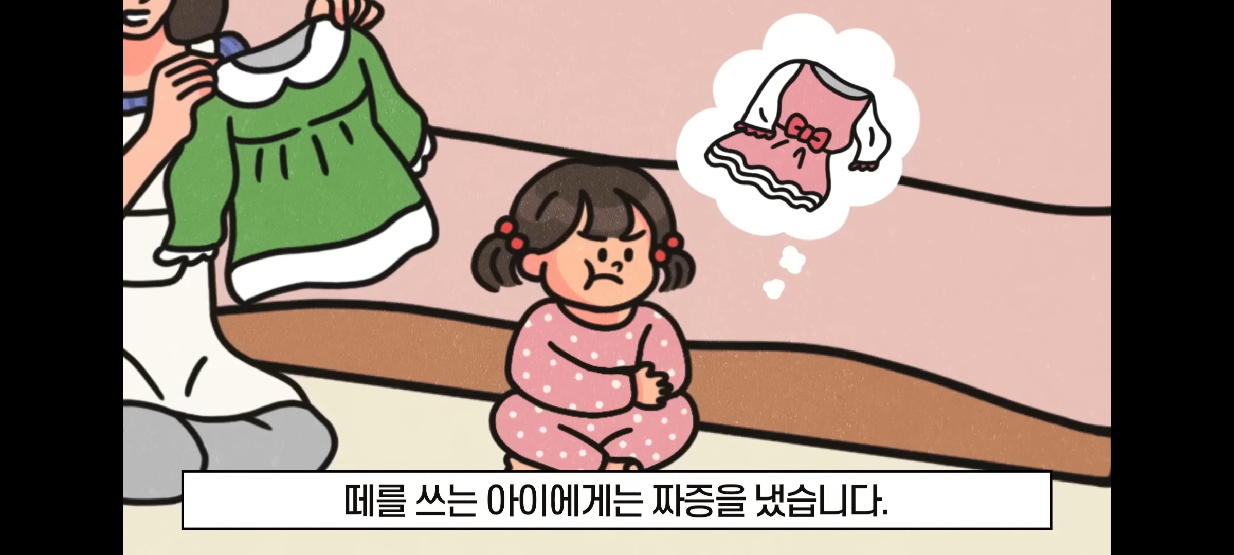 외출할 때마다 매번 분홍색 옷을 달라고 떼를 쓰는 아이에게는 짜증을 냈습니다.