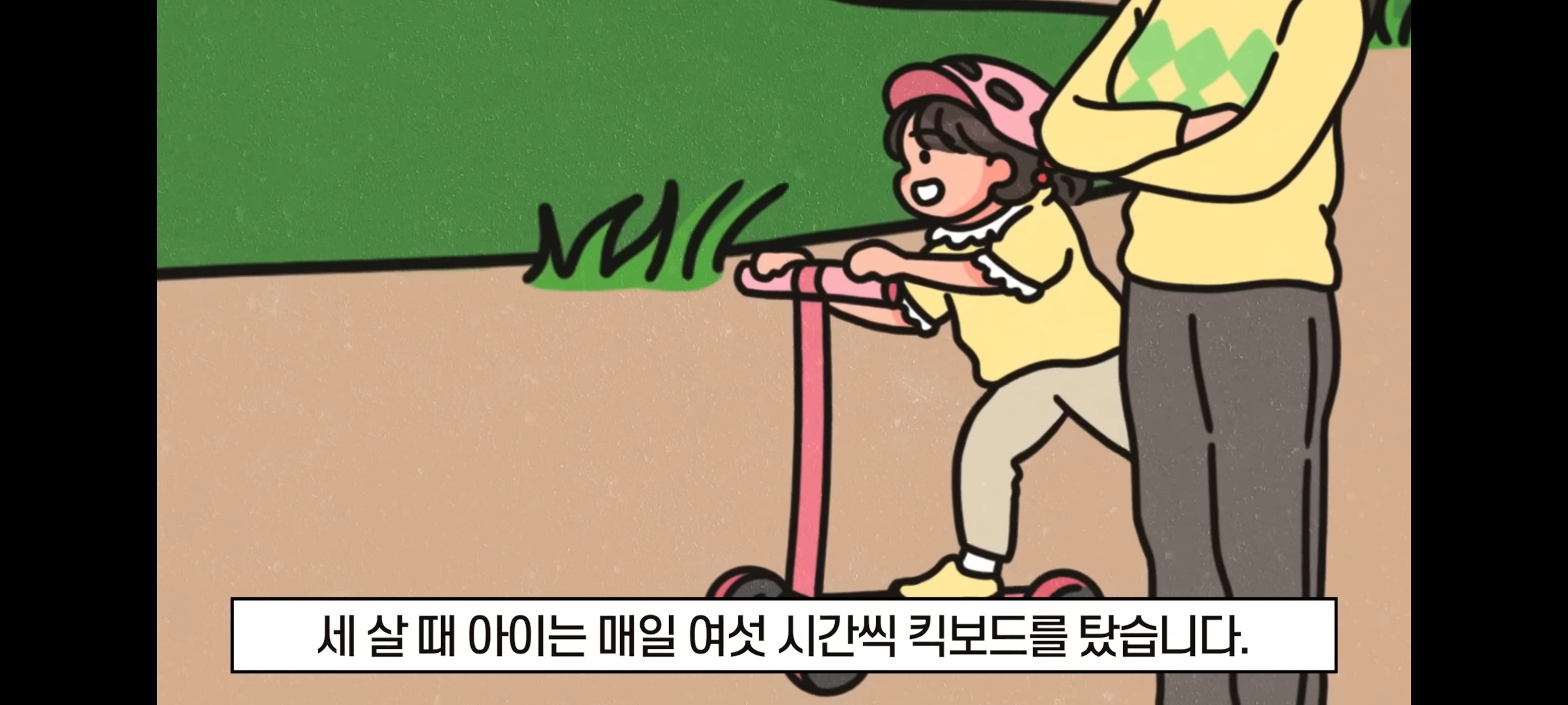 세 살 때 아이는 매일 여섯 시간씩 킥보드를 탔습니다.