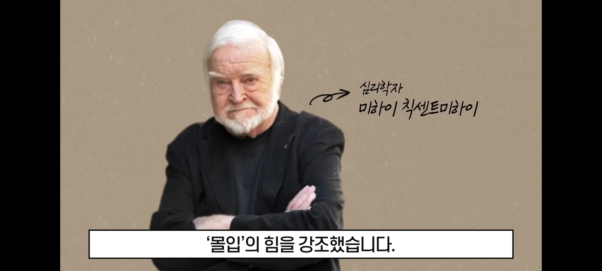 몰입이란 어떤 보상이나 결과를 바라지 않고, 시간의 흐름조차 잊을 만큼 깊이 빠져드는 상태입니다.