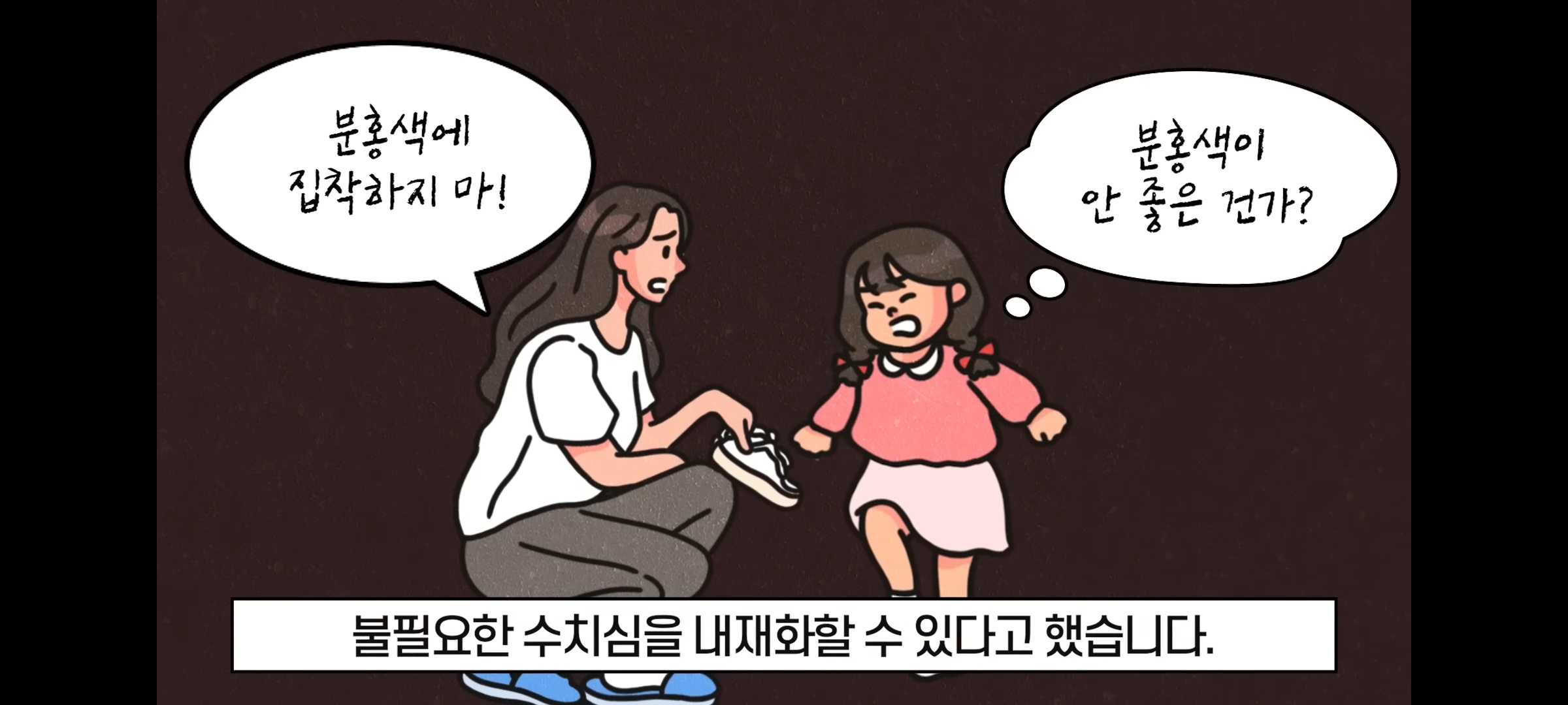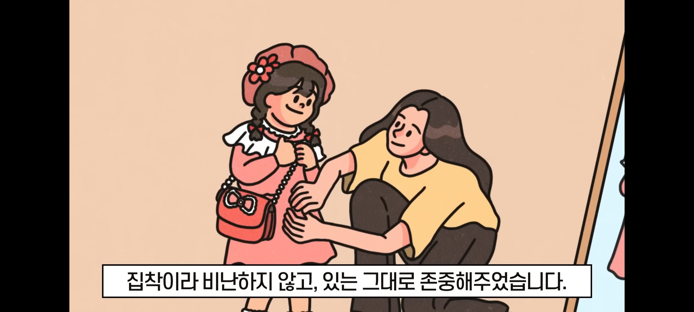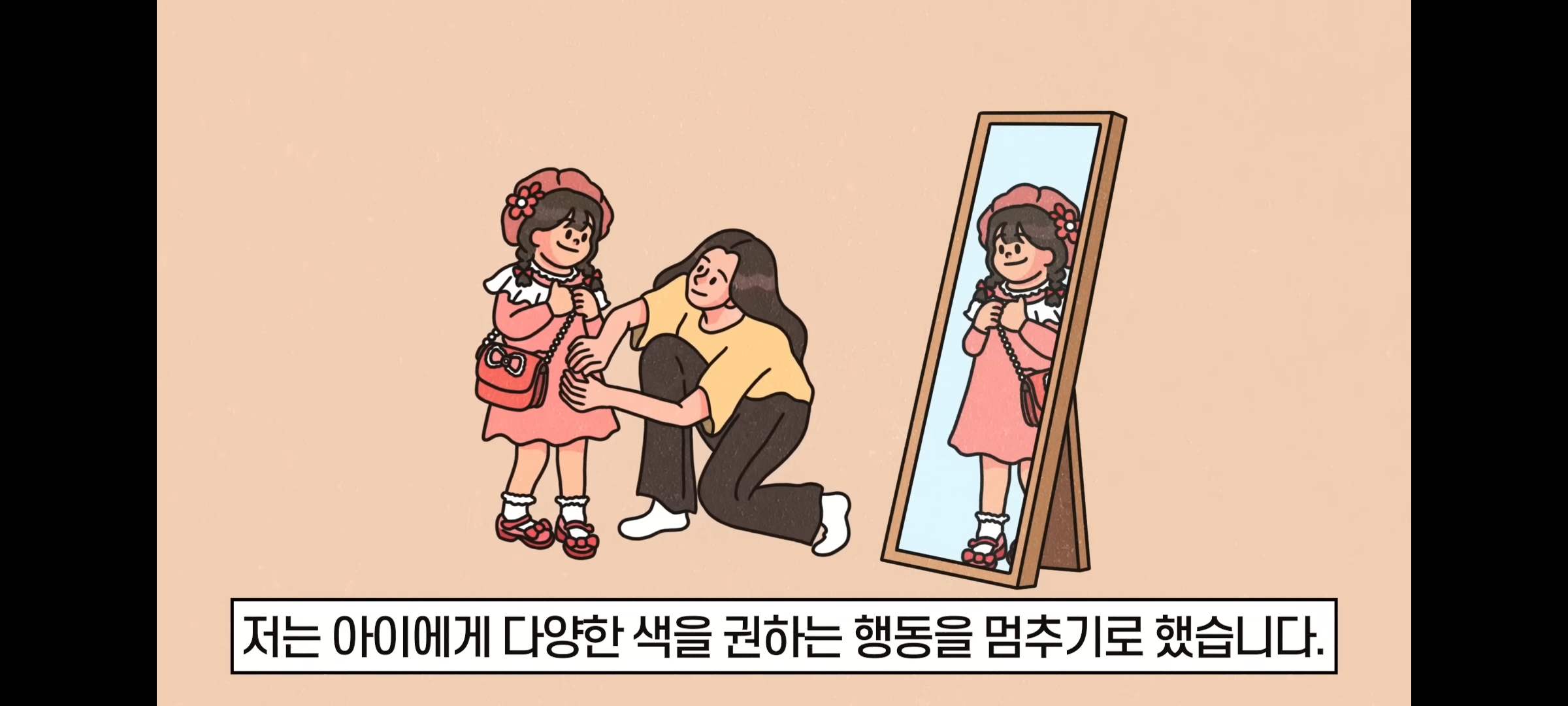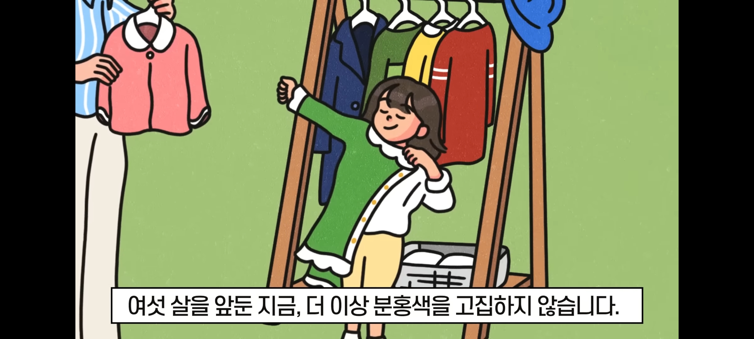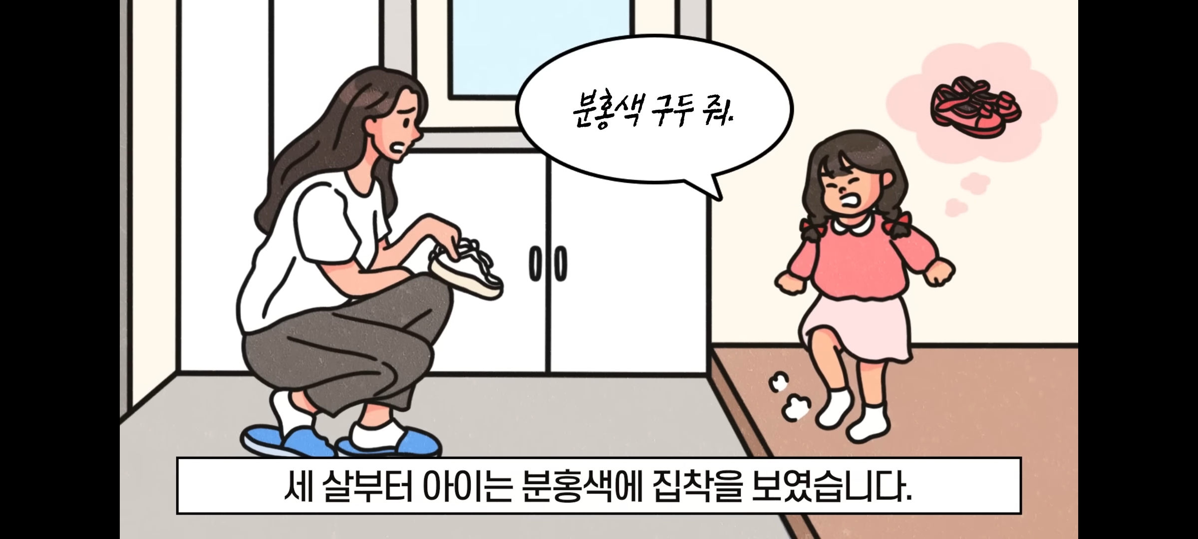 분홍색을 좋아하는 아이의 취향을 집착이라 비난하지 않고, 있는 그대로 존중해주었습니다.