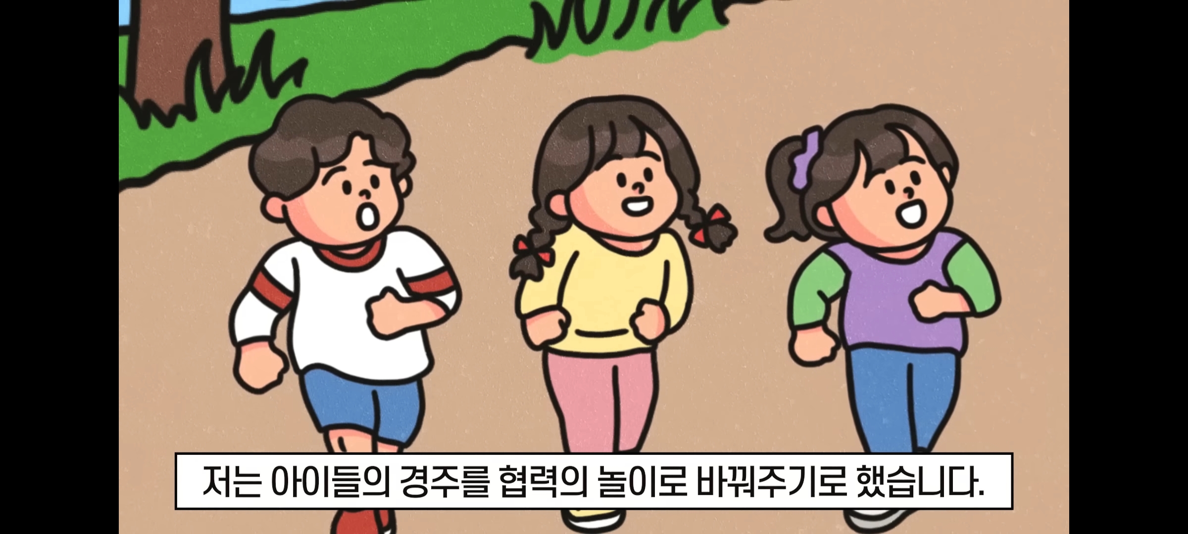 저는 아이들의 경주를 협력의 놀이로 바꿔주기로 했습니다.