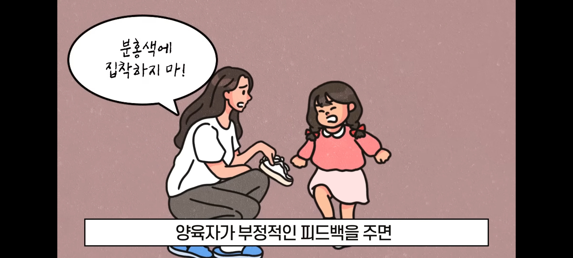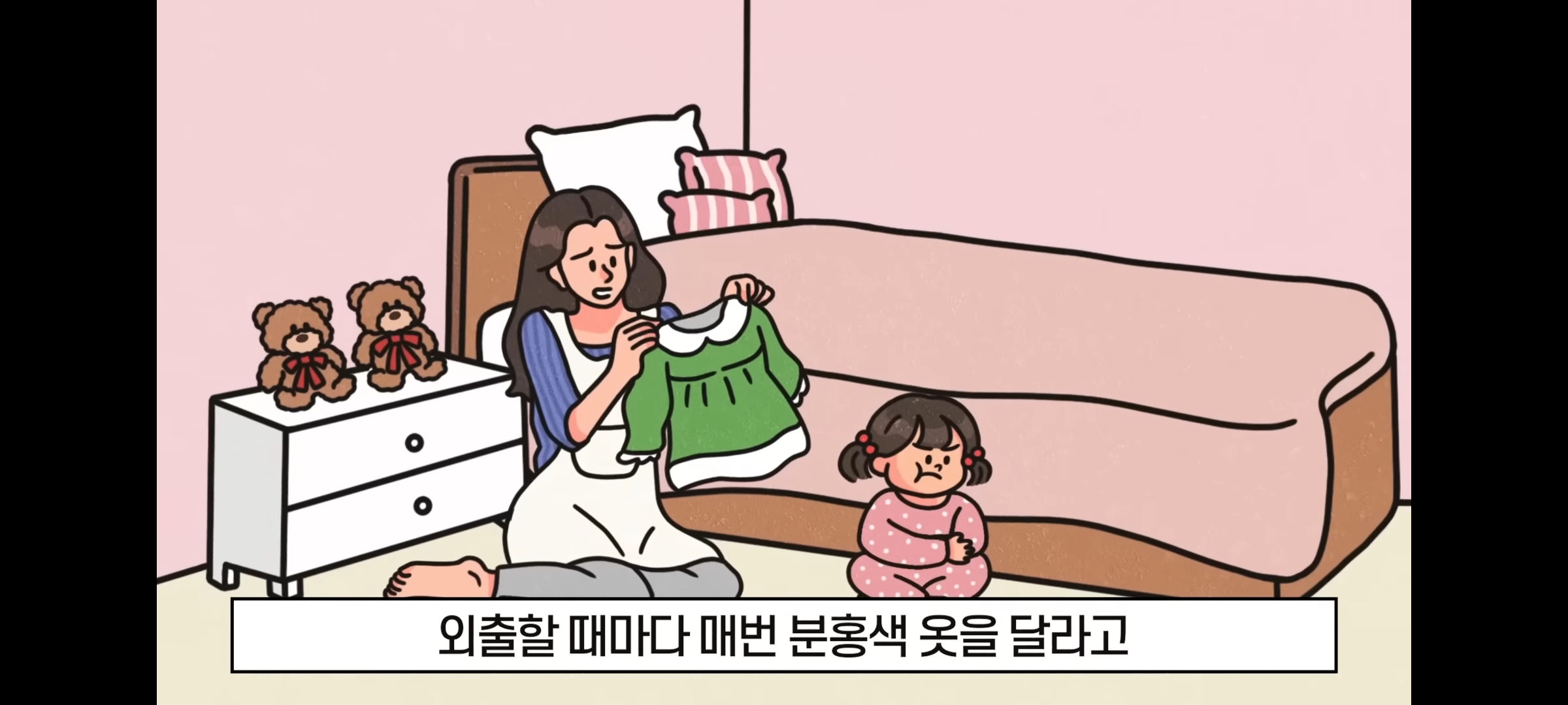 외출할 때마다 매번 분홍색 옷을 달라고 떼를 쓰는 아이에게는 짜증을 냈습니다.