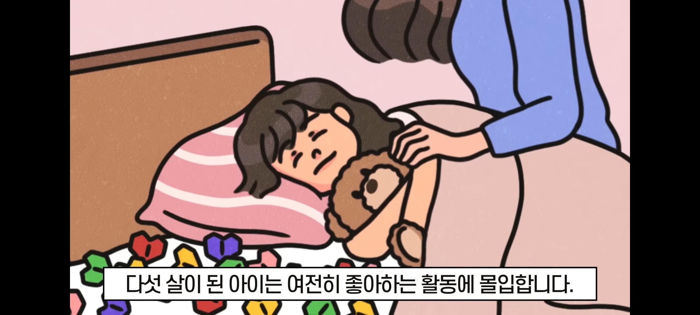 다섯 살이 된 아이는 여전히 좋아하는 활동에 몰입합니다.