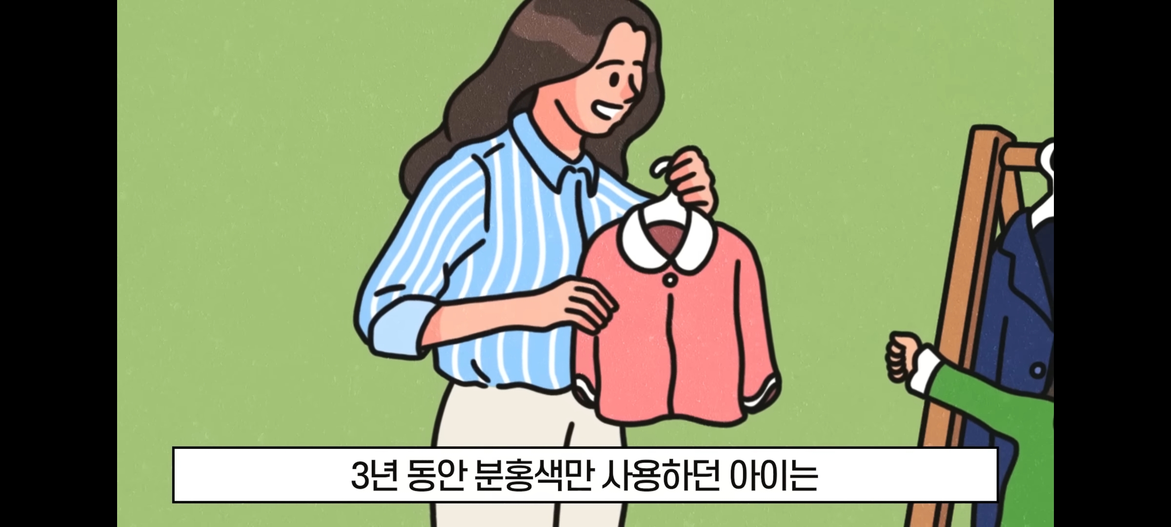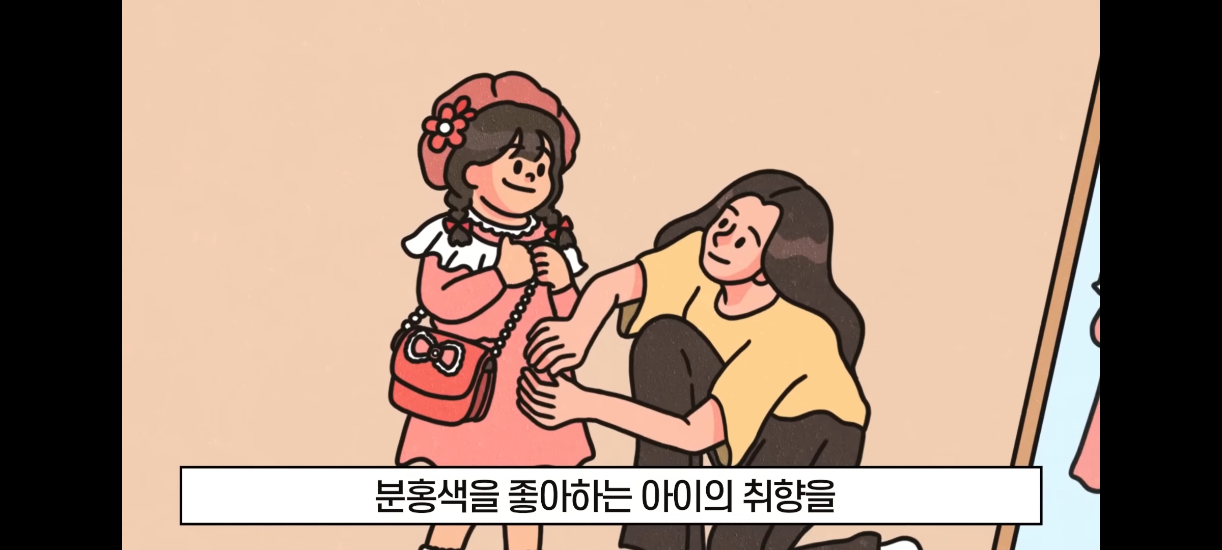 분홍색을 좋아하는 아이의 취향을 집착이라 비난하지 않고, 있는 그대로 존중해주었습니다.