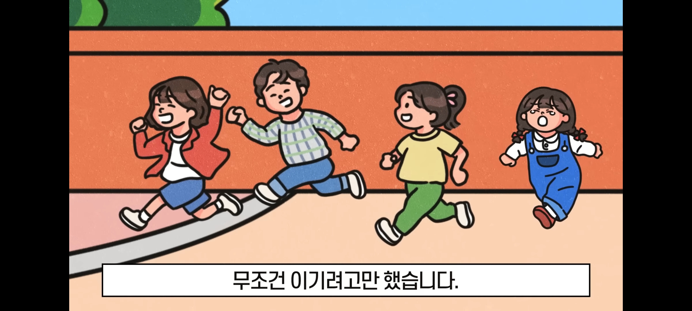 아이는 친구들과 달리기 시합을 할 때마다 무조건 이기려고만 했습니다.