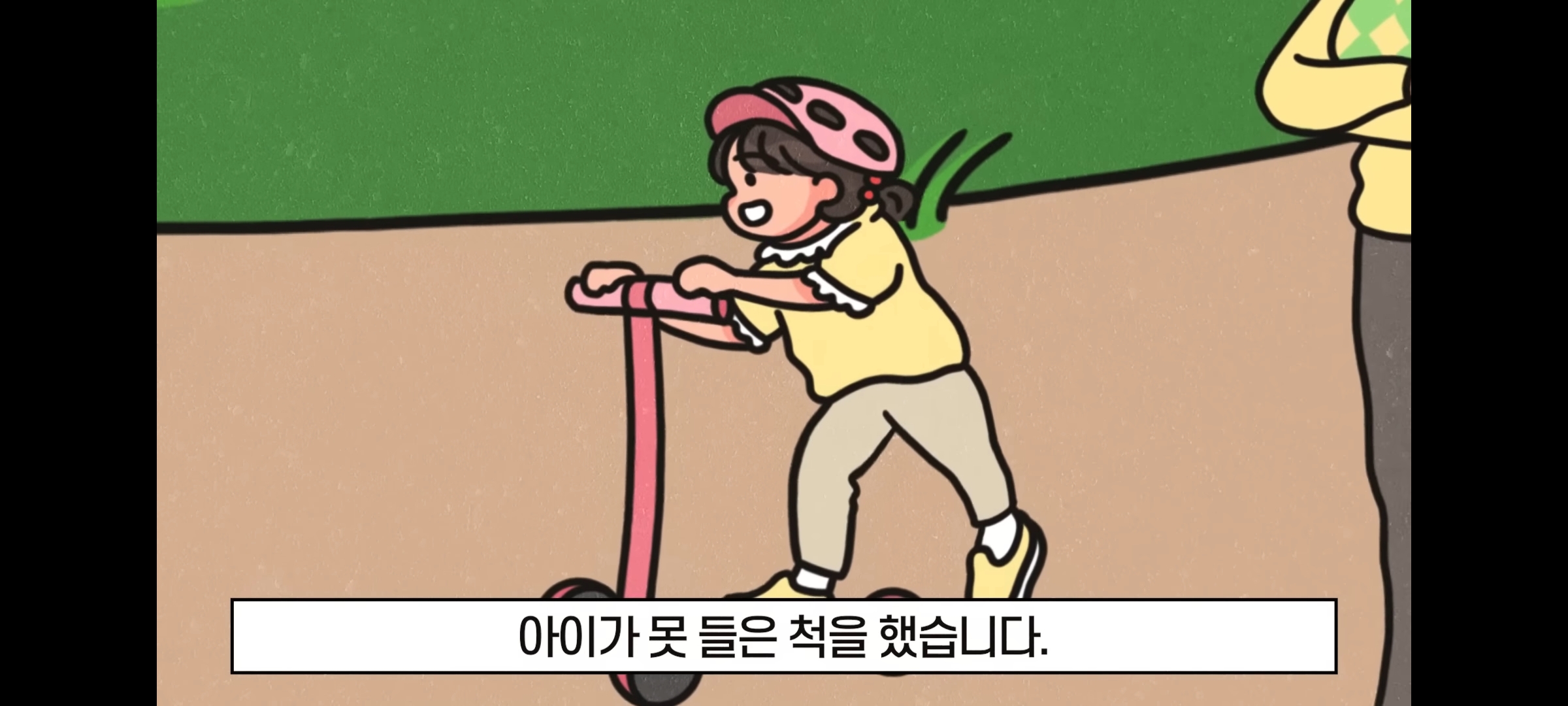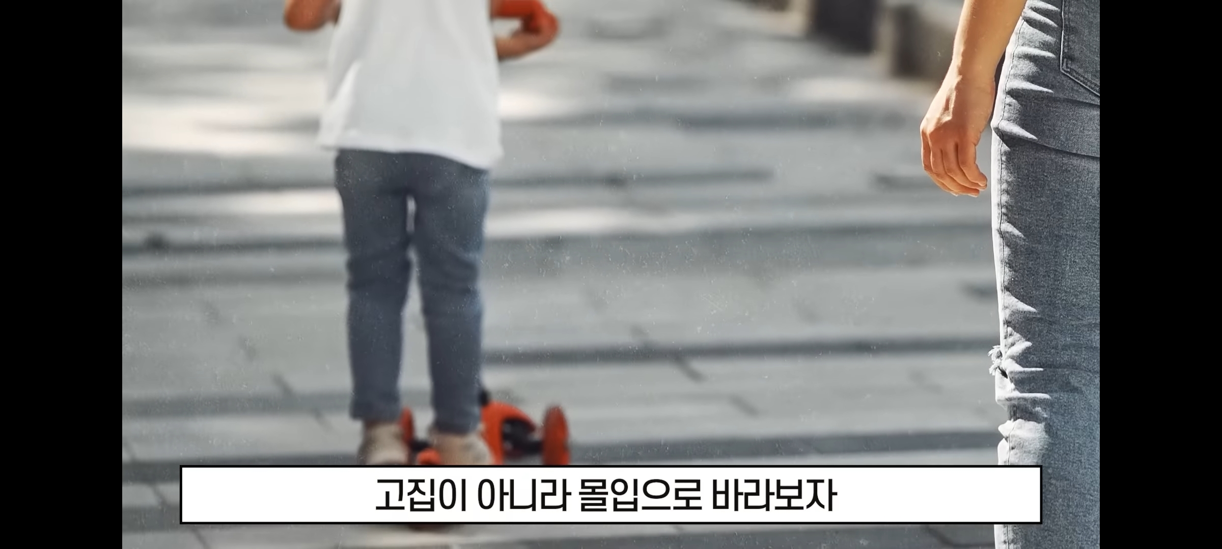 고집이 아니라 몰입으로 바라보자 킥보드를 타려고 노력하는 기특한 모습이 보였습니다.