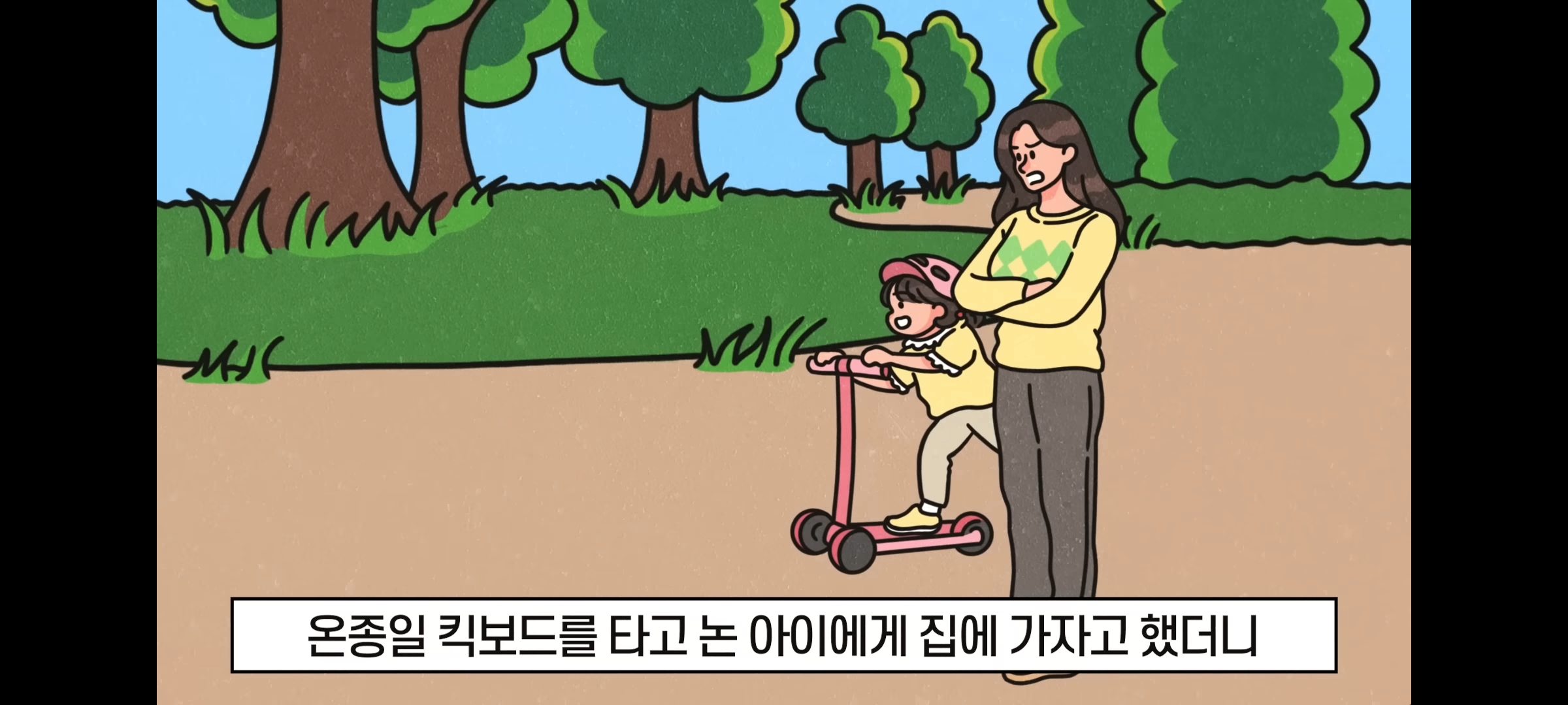 온종일 킥보드를 타고 논 아이에게 집에 가자고 했더니 아이가 못 들은 척을 했습니다.