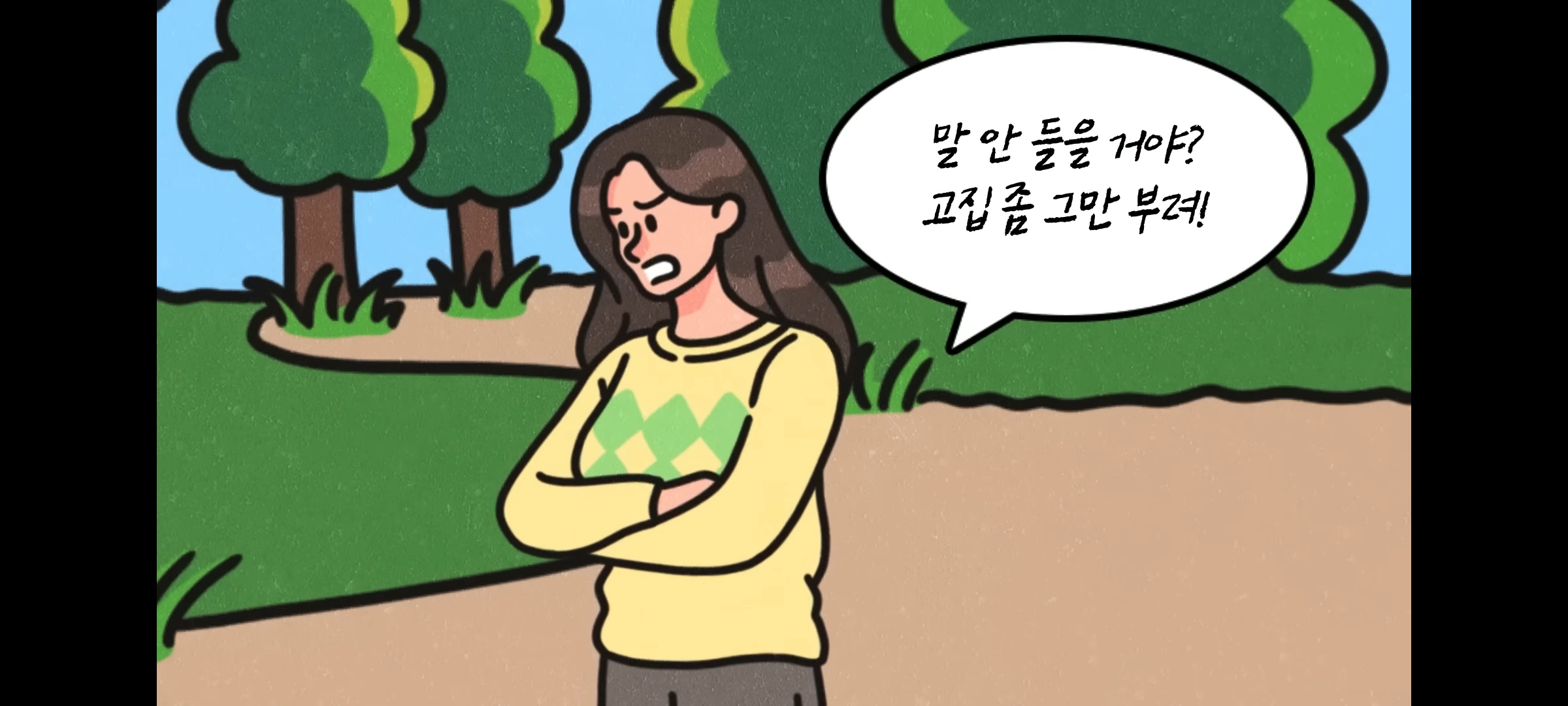 "말 안 들을 거야? 고집 좀 그만 부려!"