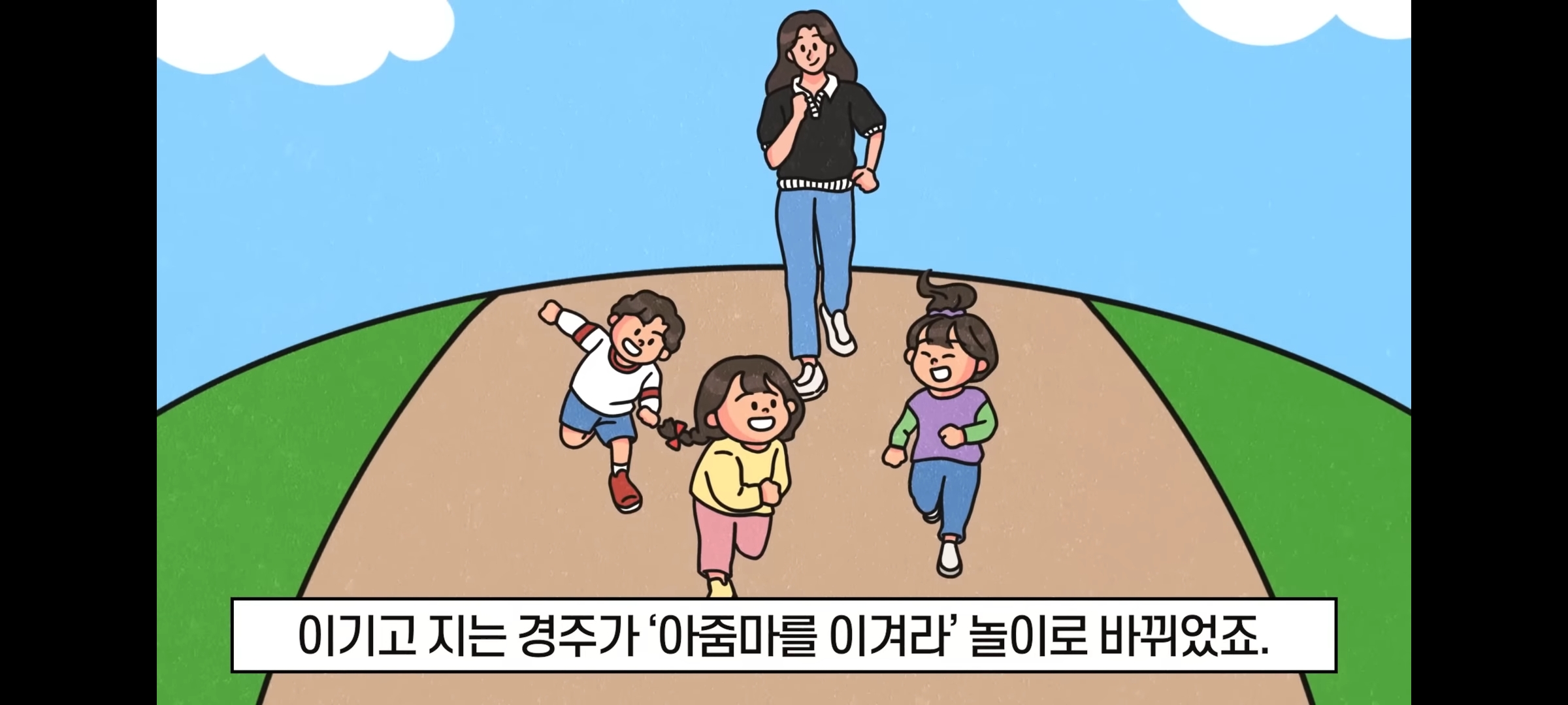 이기고 지는 경주가 '아줌마를 이겨라'놀이로 바뀌었죠