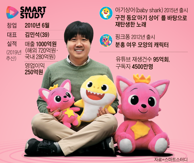 Pinkfong은 대한민국 브랜드입니다.스마트스터디가 제작한 애플리케이션으로 시작한 것으로, 이후 동요, 뮤지컬, 게임, 애니메이션 등 여러 분야로 진출하였습니다. 동요 <상어 가족>으로 제일 잘 알려져 있습니다. 2017년, 핑크퐁 상어 가족과 핑크퐁 모양‧색깔 애플리케이션이 대한민국 유튜브에서 가장 인기 있는 동영상과 구글 플레이 선정 올해를 빛낸 패밀리 앱 최우수상에 각각 선정되었습니다.
