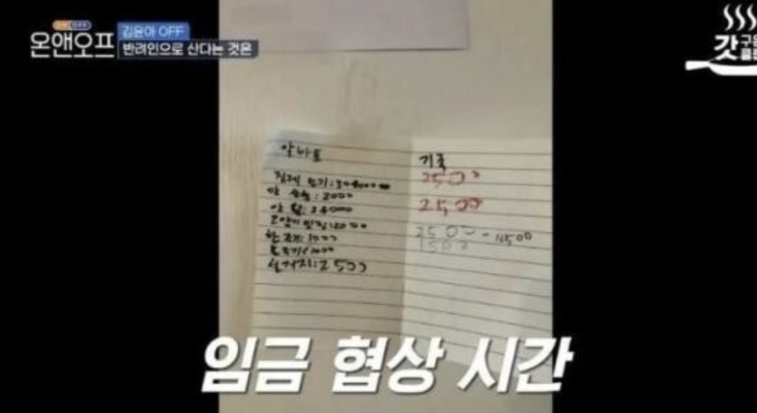 작년 민재가 계약(?)한 집안일 알바 금액에 대한 임금협상 시간, 작년 가격 말고, 올해 새롭게 임금 협상을 한다고 함.
