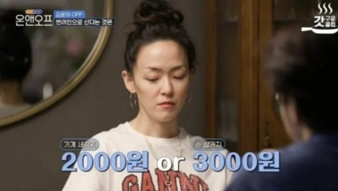 작년 설거지 비용 2500원. 올해는 식세기 쓰면 2000원, 손 설거지 3000원이라고 김윤아가 제안하니 아들이 좋다고 수락함. 강아지 산책은 작년에 2000원이었는데, 올해도 동결해서 2000원만 받겠다고 아들이 자진해서 파격 결정해 줌. 고양이 빗질도 2000원!!!! 계약 완료!
